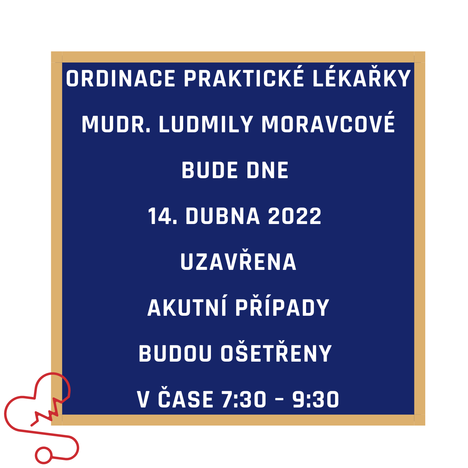 Obec Červená Voda › Uzavřena ordinace MUDr. Ludmily Moravcové Uzavřena ordinace MUDr. Ludmily Moravcové 14. dubna 2022
