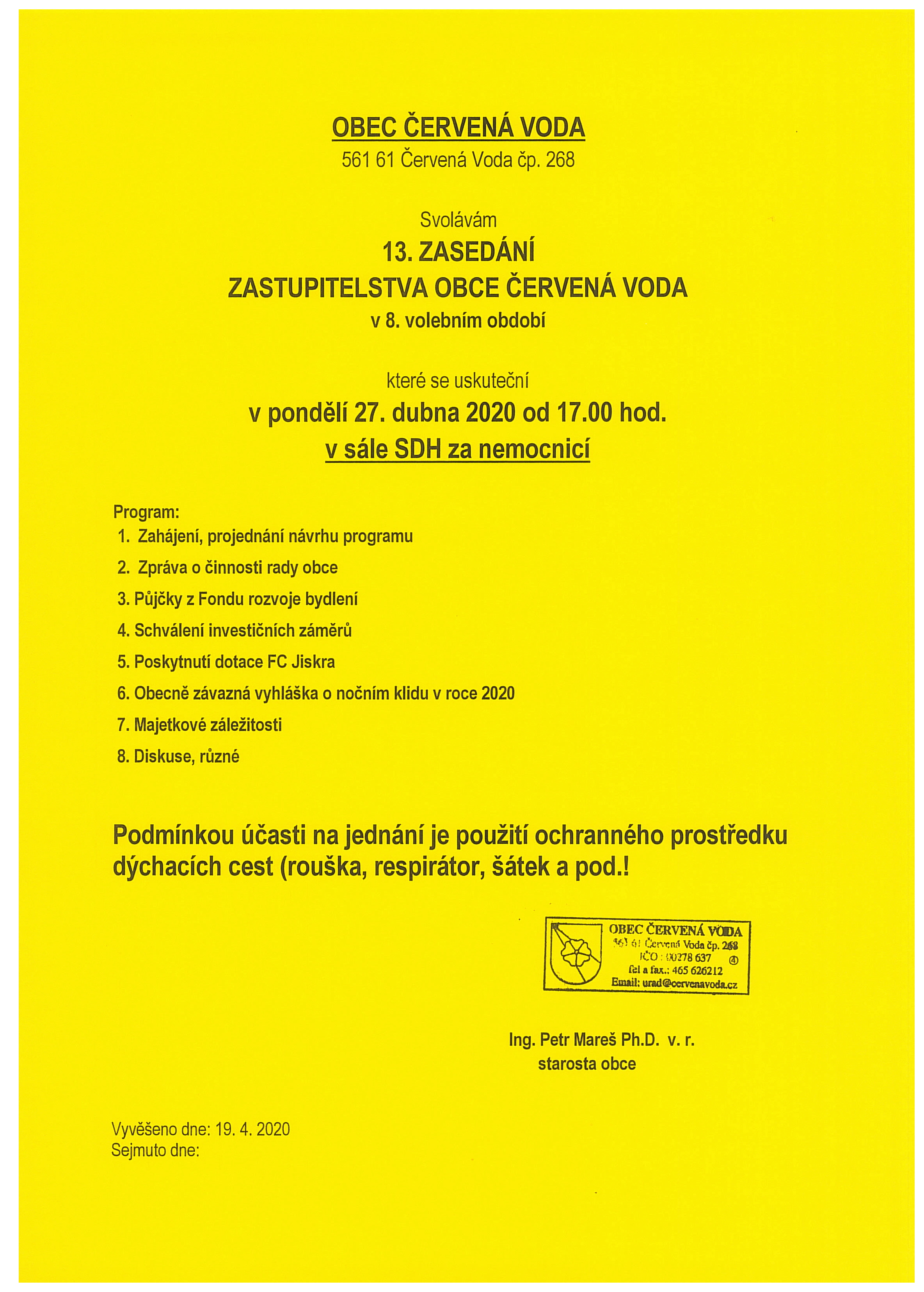 13. zasedání zastupitelstva obce