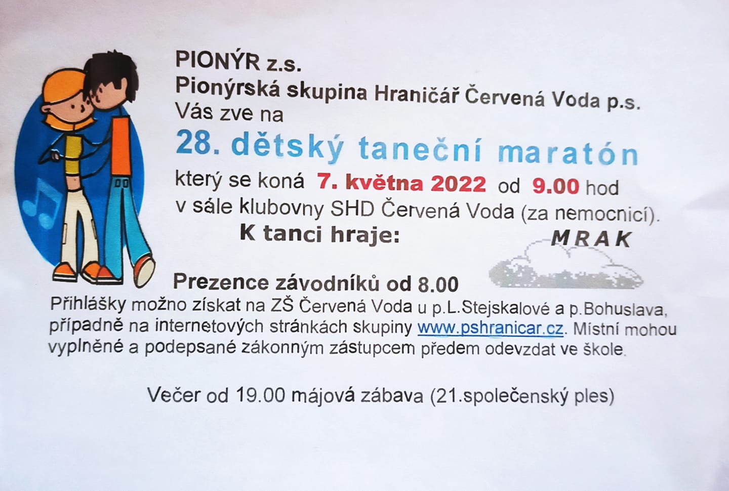 Obec Červená Voda › 28. DĚTSKÝ TANEČNÍ MARATÓN A MÁJOVÁ ZÁBAVA 28. DĚTSKÝ TANEČNÍ MARATÓN A MÁJOVÁ ZÁBAVA 7.5.2022Červená Voda