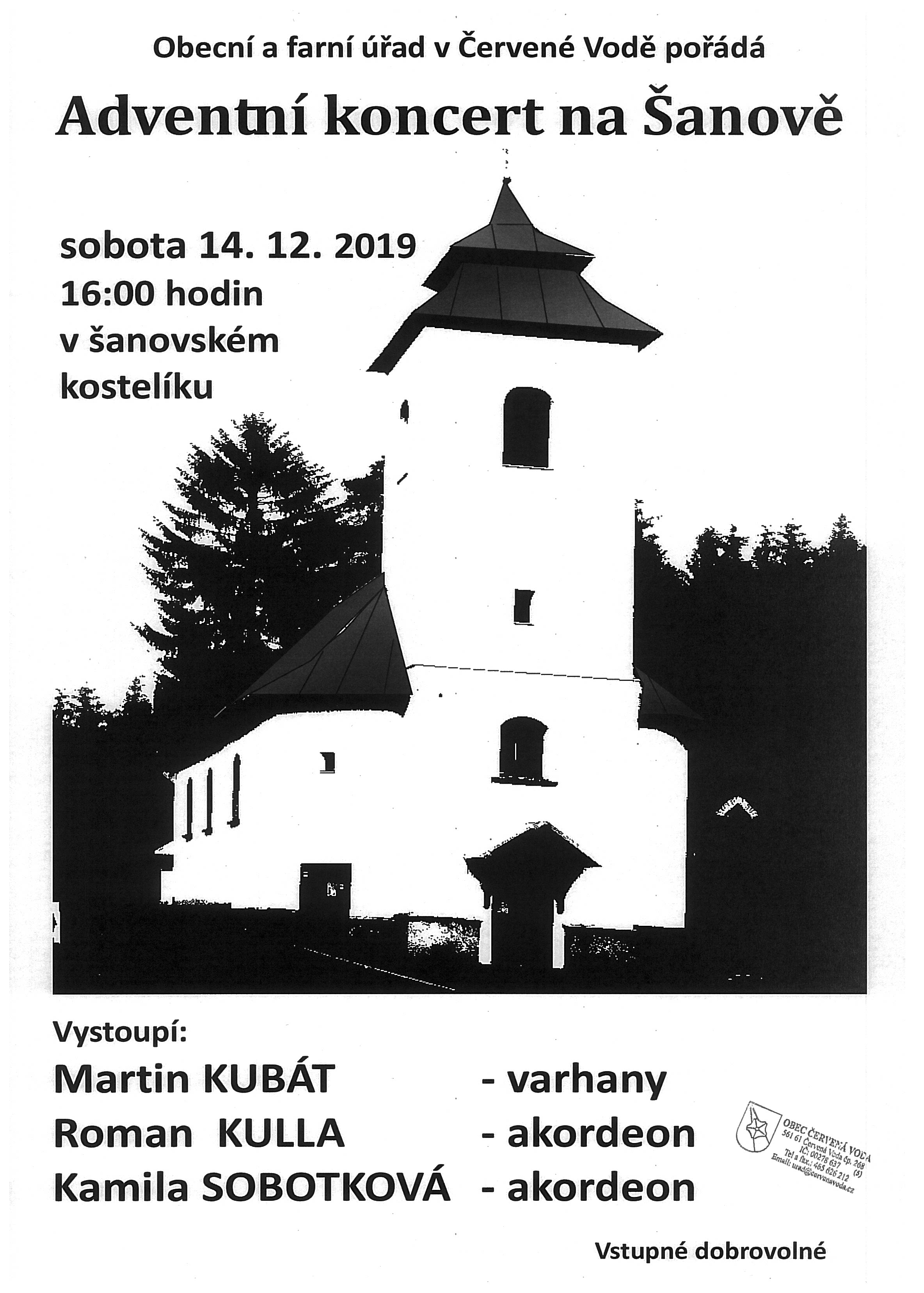 Obec Červená Voda › ADVENTNÍ KONCERT V KOSTELE NA ŠANOVĚ ADVENTNÍ KONCERT V KOSTELE NA ŠANOVĚ 14.12.2019Červená Voda