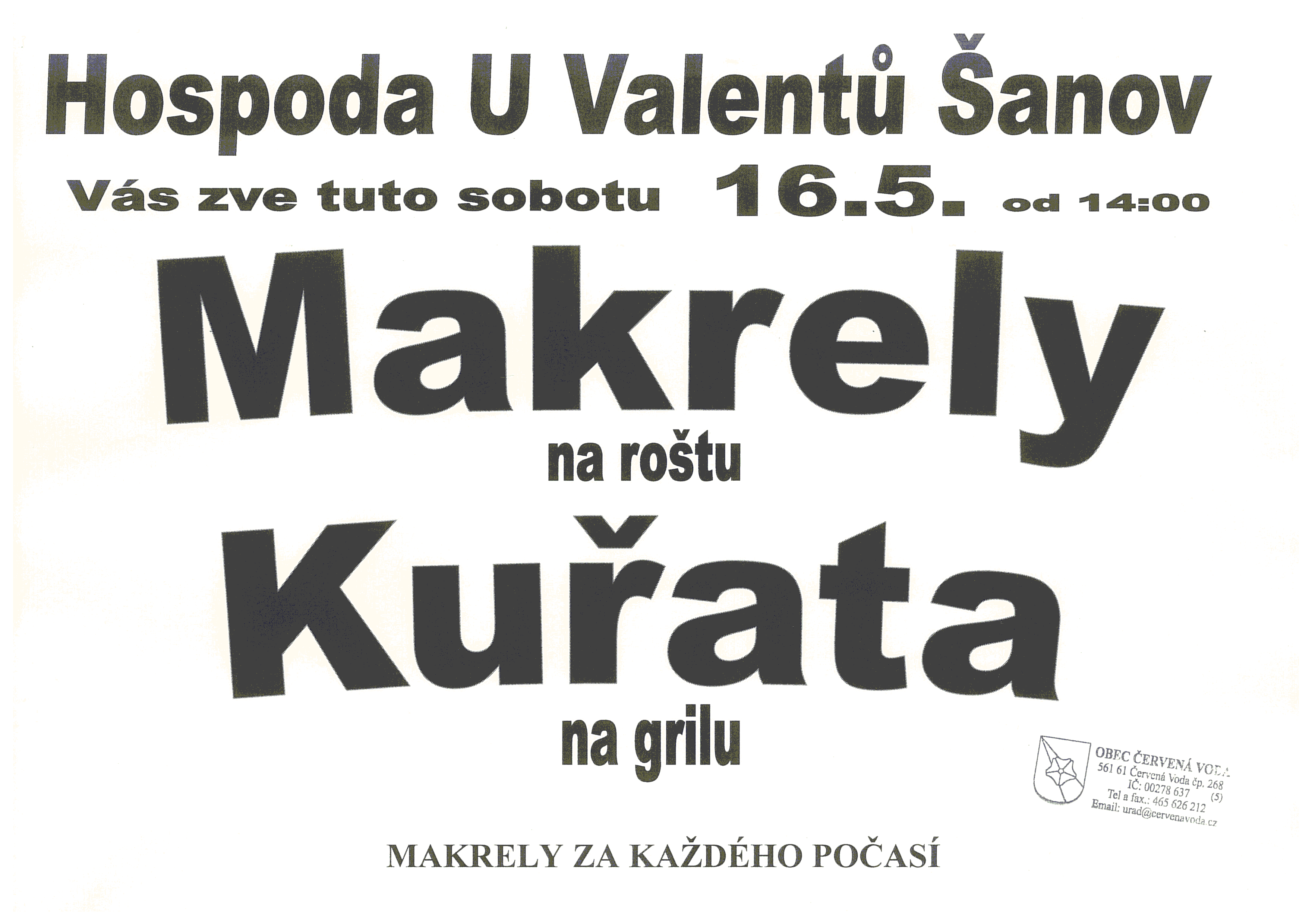 Obec Červená Voda › MAKRELY NA ROŠTU - KUŘATA NA GRILU MAKRELY NA ROŠTU - KUŘATA NA GRILU 16.5.2020Červená Voda