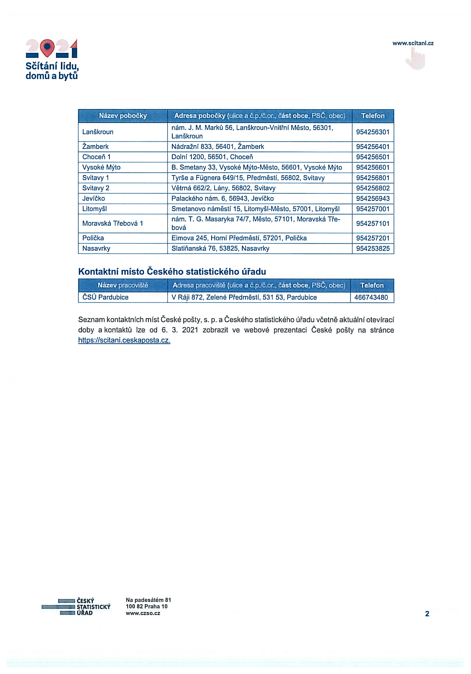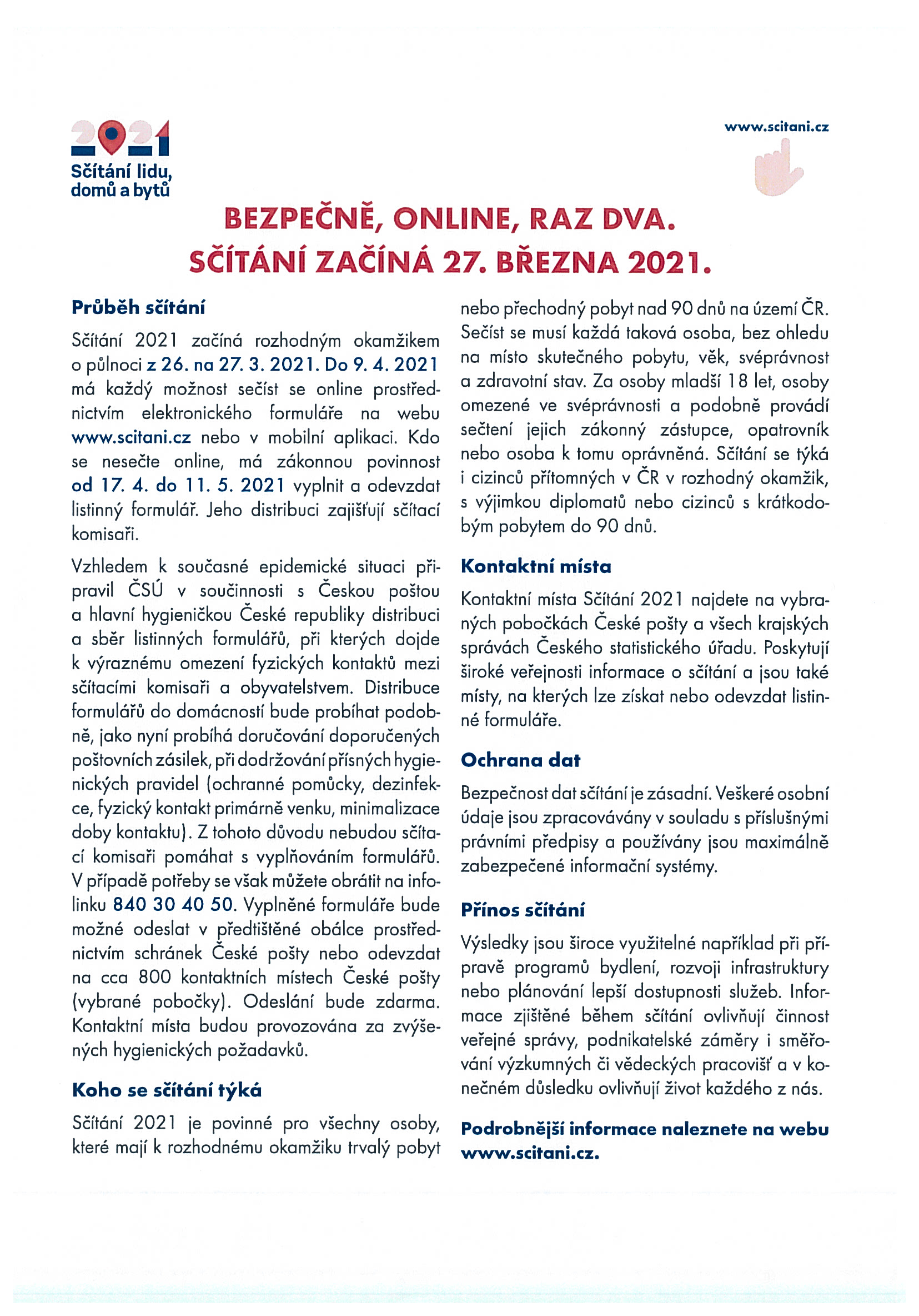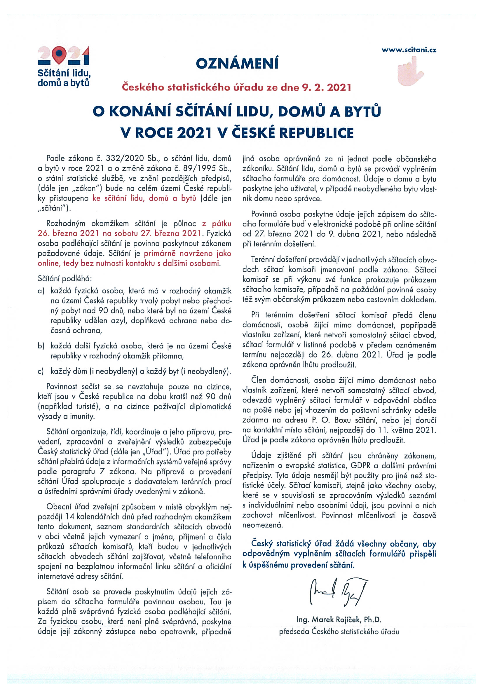 Obec Červená Voda › Oznámení o sčítání lidu, domů a bytů v roce 2021 Oznámení o sčítání lidu, domů a bytů v roce 2021 26. března 2021