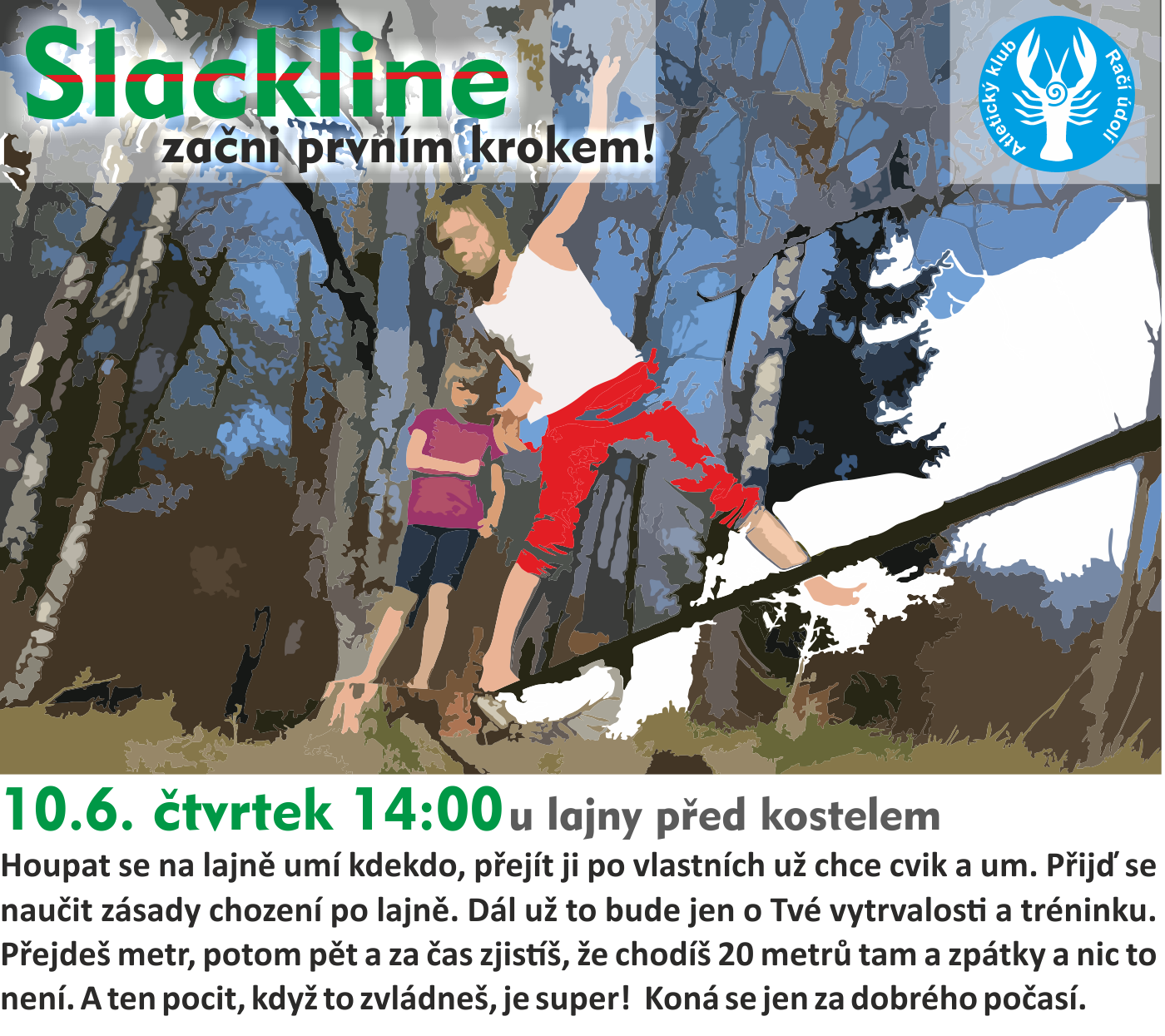 Obec Červená Voda › SLACKLINE - CHŮZE PO LANĚ SLACKLINE - CHŮZE PO LANĚ 10.6.2021Červená VodaChcete zkusit něco nového? Třeba slackline?
