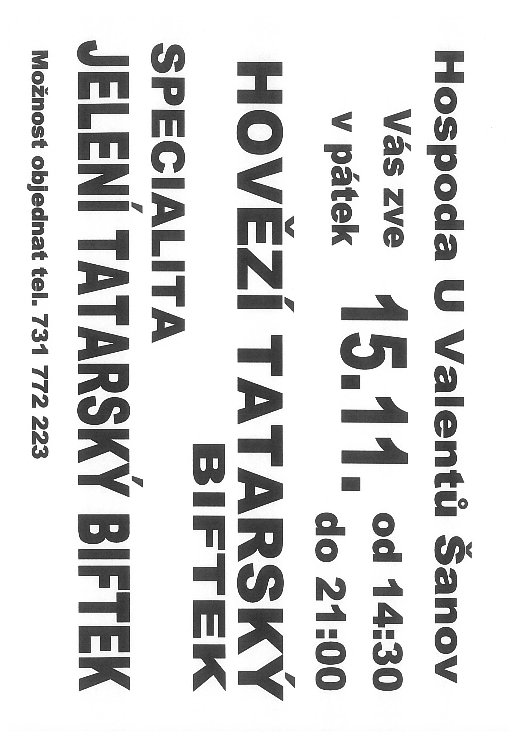 Obec Červená Voda › TATARSKÝ BIFTEK V HOSPODĚ U VALENTŮ TATARSKÝ BIFTEK V HOSPODĚ U VALENTŮ 15.11.2019Červená Voda