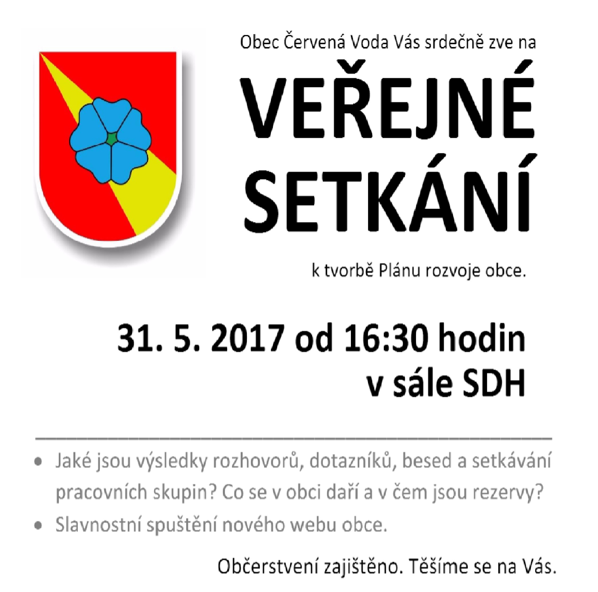 Veřejné setkání dne 31.5.2017 od 16:30 hodin na sále SDH.